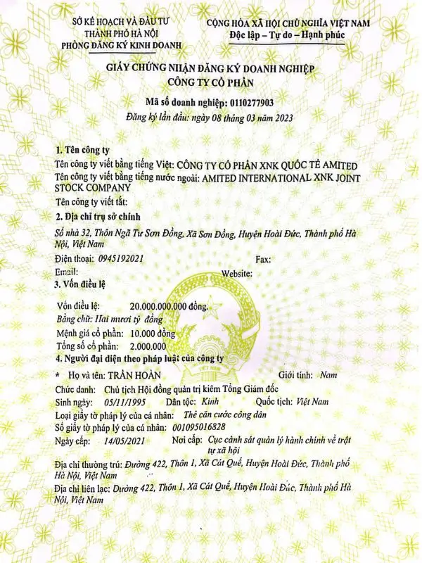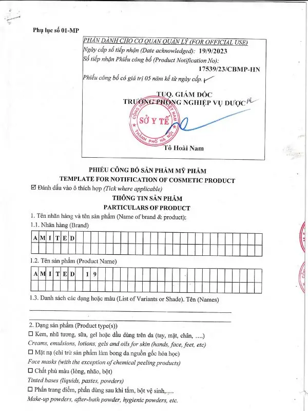 AMITED cam kết đầy đủ giấy tờ công bố, kiểm định TSL, bảo vệ tuyệt đối quyền lợi kinh doanh.